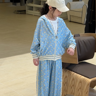 비다이어리.블루플라워후드집업상하세트