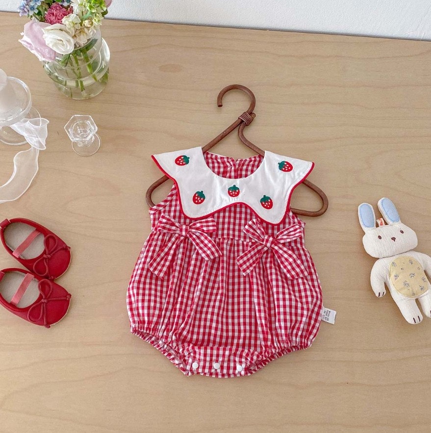 [수입]체크레드딸기슈트